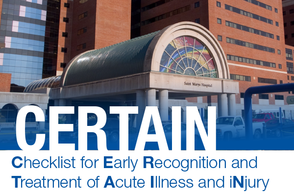Consistent, patient centered care and delivery of evidence based best practices can be challenging in the complex, dynamic ICU. The CERTAIN (Checklist for Early Recognition and Treatment of Acute Illness and iNjury) program offers providers and healthcare teams a systematic approach to the initial assessment and ongoing evidence based management of the critically ill or injured patient. CERTAIN also offers bedside decision support tools, and a pragmatic approach to quality improvement to speed integration of these principles in daily clinical practice .
